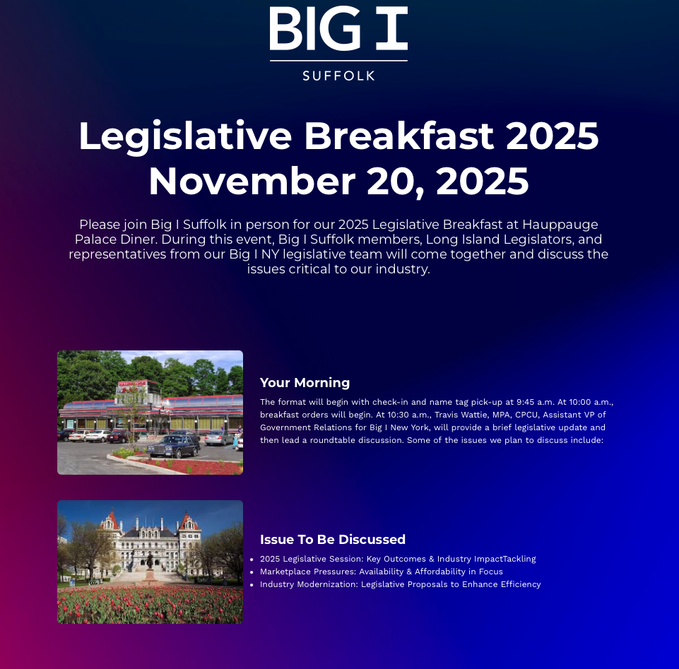 BIG I SUFFOLK is the local association for the BIG I New York. We represent independent insurance agents who work in Suffolk County.